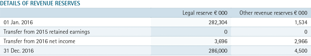 The increase in the assessment period used for defining the average discount rate from 7 to 10 years resulted in a positive contribution to income of 2,789 (thousand), which is barred from being distributed and is included under the item “Other revenue reserves”.