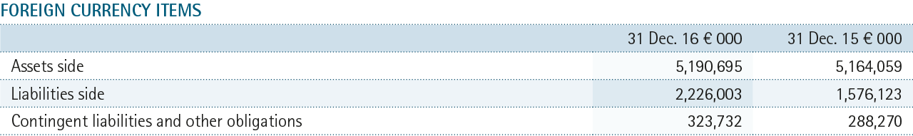 As at 31.12.2016 the portfolio contained no financial instruments used in the trading book. During the year under review no changes were made to the Bank’s internal criteria for including financial instruments in the trading portfolio.