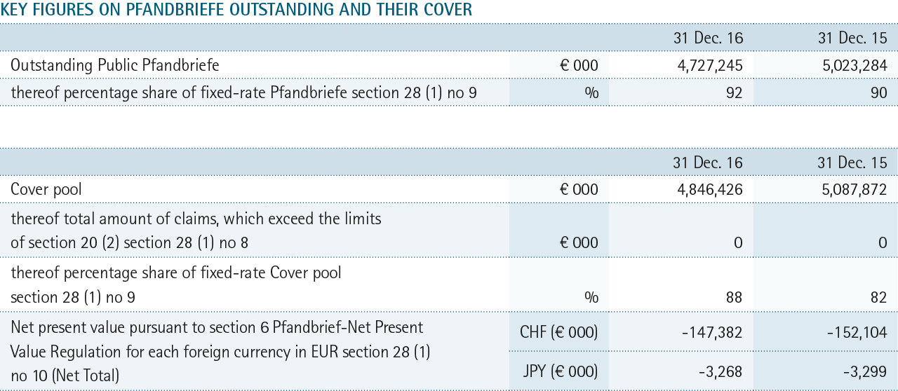 PUBLIC PFANDBRIEFE OUTSTANDING AND THEIR COVER