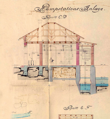 So gewährte die Landwirthschaftsbank um die Jahrhundertwende zum Beispiel der oberpfälzischen Stadt Hemau ein Darlehen über 120.000 Mark, mit dem diese ihre Wasserversorgung modernisierte. Die Stadt baute einen neuen Brunnen, neue Speicher und Wasserleitungen, erweiterte das Pumpwerk, installierte eine moderne Turbine und verlegte moderne Hausanschlüsse. Repro aus: Böhm, Feuerer, Schwaiger, Wasserversorgung der Stadt Hemau, 2014, S. 66