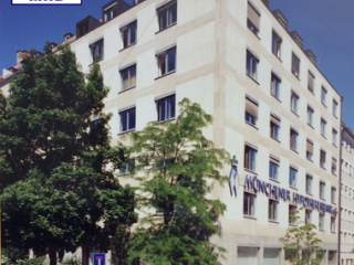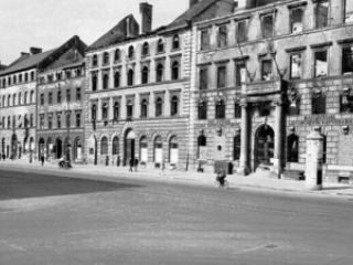 Anfang Januar 1945 wurde das Bankgebäude, das die Landwirthschaftsbank 1926 in der Ludwigstraße 7 bezogen hatte, bei einem nächtlichen Bombenangriff zerstört. Nur der Keller mit dem Tresor blieb erhalten. Doch es musste weitergehen: Ein Teil des Betriebs wurde in die Wohnungen der Mitarbeiterinnen und Mitarbeiter verlagert, sozusagen ins Homeoffice. Zusätzlich wurden provisorische Büros im Keller eingerichtet. Auch im Nachbargebäude und ein paar Häuser weiter bei der Süddeutschen Bodencreditbank bekam die Landwirthschaftsbank eine provisorische Unterkunft. Somit konnte die Bank ihren Geschäftsbetrieb - zumindest eingeschränkt - bald wieder aufnehmen.
