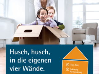 Darüber hinaus wurden spezielle Darlehensprodukte für Volksbanken und Raiffeisenbanken entwickelt: 1978 das SOFORT-Darlehen, 1988 das Münchener Direktdarlehen, in den 1990er Jahren das Forward-Darlehen und in jüngster Zeit das Grüne Darlehen und das Familiendarlehen. Bis heute sind die Primärgenossenschaften der wichtigste Vertriebspartner. Im Jahr 2020 vermittelten die genossenschaftlichen Partnerbanken 3,1 Milliarden Euro an Wohnimmobilienfinanzierungen an die MünchenerHyp. Bild: Ein Motiv aus der Markenkampagne des Jahres 2008.