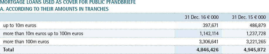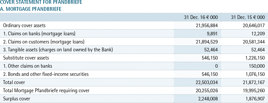 PUBLIC PFANDBRIEFE OUTSTANDING AND THEIR COVER