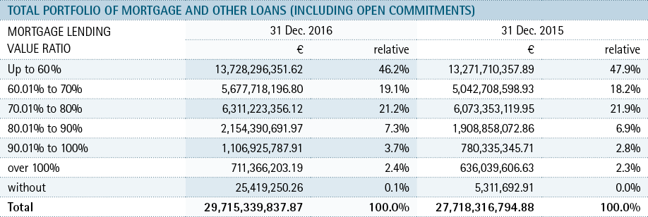We take care to ensure that the vast majority of our mortgage business activities consists of top tier loans with moderate loan-to-value ratios. The current breakdown based on loan-to-value ratios is as follows: